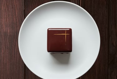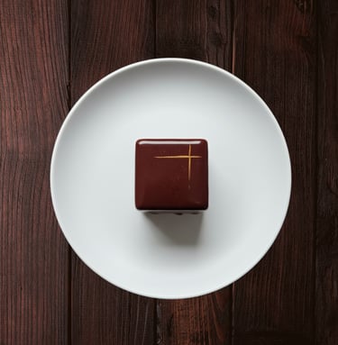 Plongez dans l'intensité de notre Royal au Chocolat 70% Cacao. Ce dessert emblématique est un ensemble de textures et de saveurs, conçu pour les amateurs de chocolat authentique. Découvrez l'équilibre parfait entre le croustillant du praliné feuilleté, la légèreté d'une mousse au chocolat onctueuse et la puissance aromatique d'une mousse au cacao 70%.